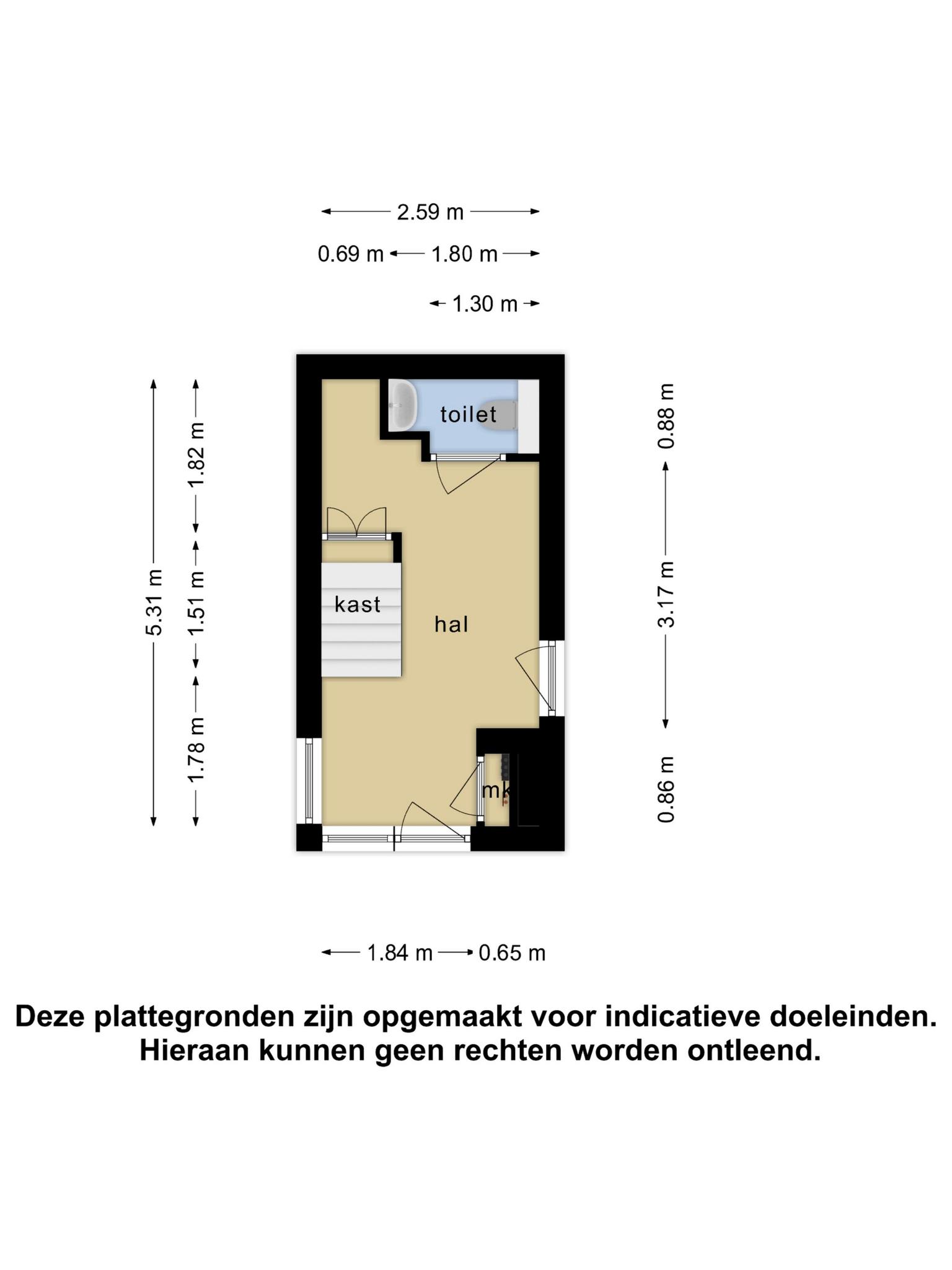 Upon entering the hall, the unique layout of the house is already noticeable. Here you will find access to the first toilet, meter cupboard, wardrobe and door to the parking garage and communal bicycle shed. Through the vide staircase you reach the first floor.