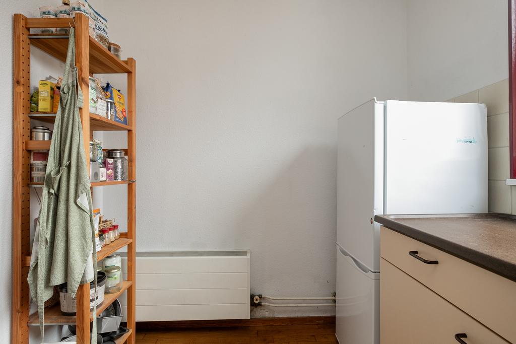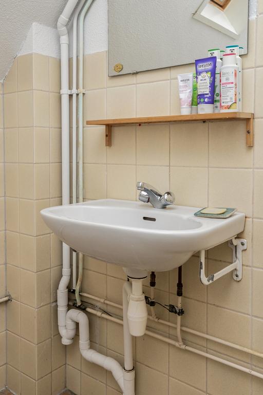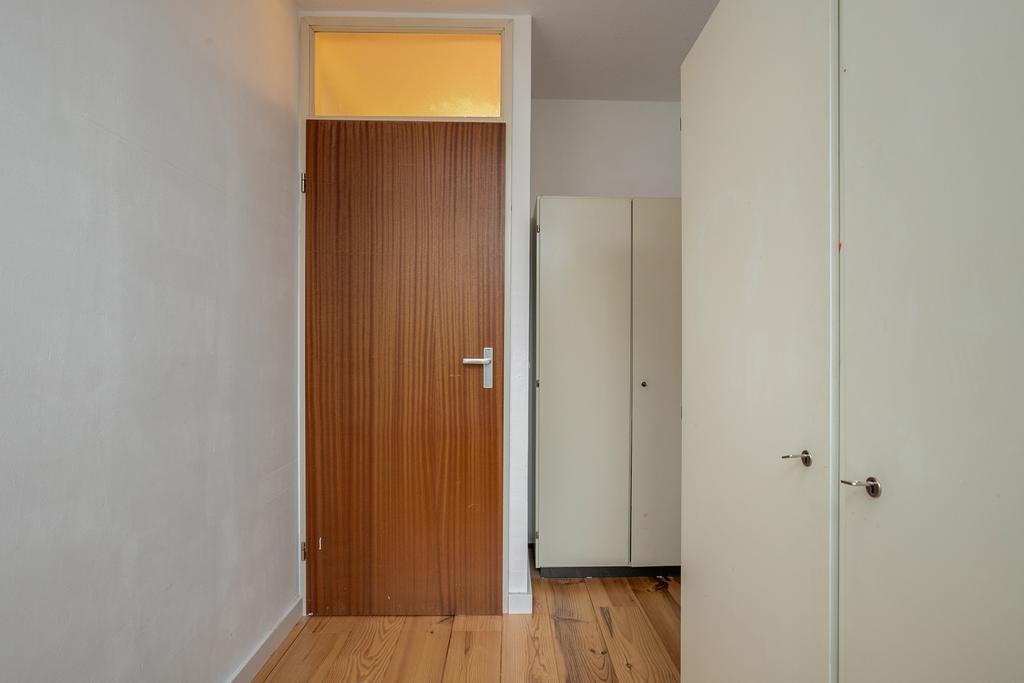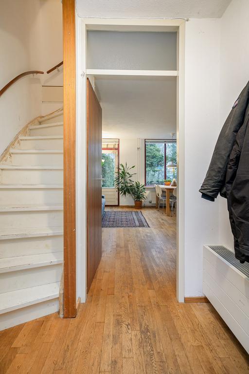 Upon entering through the front garden and past the storage, you enter the entrance hall, which leads to the spacious living room with a convenient storage closet. The living room is connected to the kitchen, located at the front of the house. The spacious layout offers plenty of opportunities to modernize the space to your own taste.