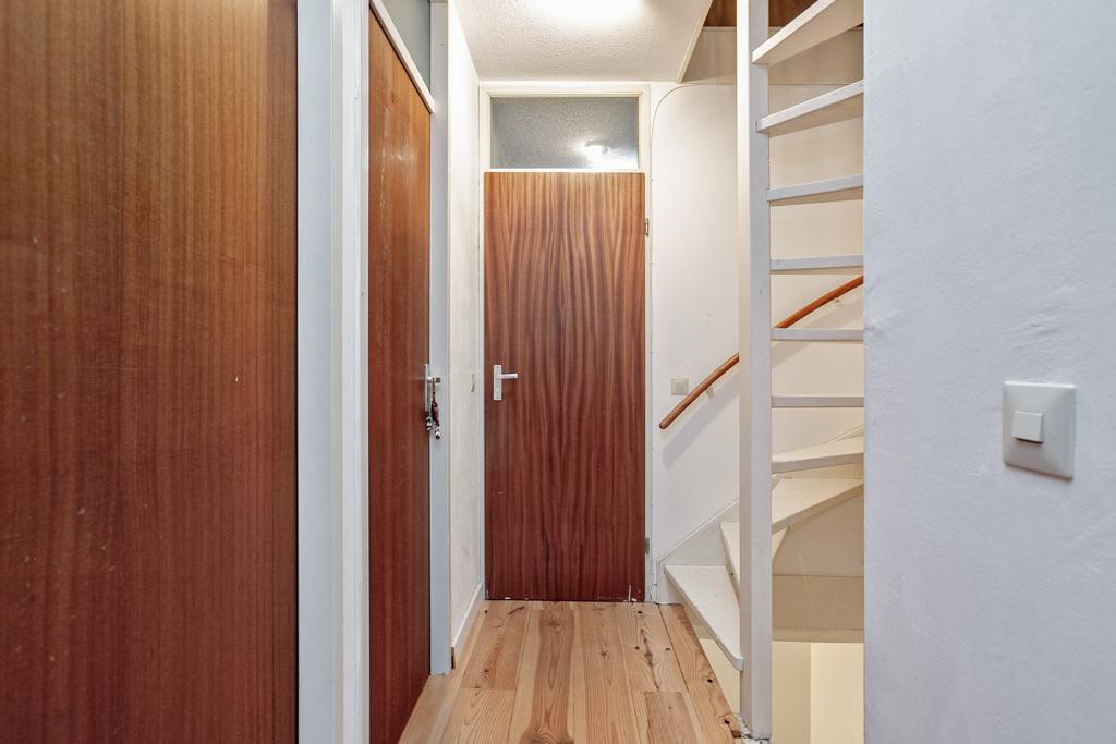 Bij binnenkomst via de voortuin en langs de berging betreedt u de entreehal, die leidt naar de ruime woonkamer met een handige opbergkast. De woonkamer staat in verbinding met de keuken, gelegen aan de voorgevel. De ruime opzet biedt veel mogelijkheden om de ruimte naar eigen smaak te moderniseren.