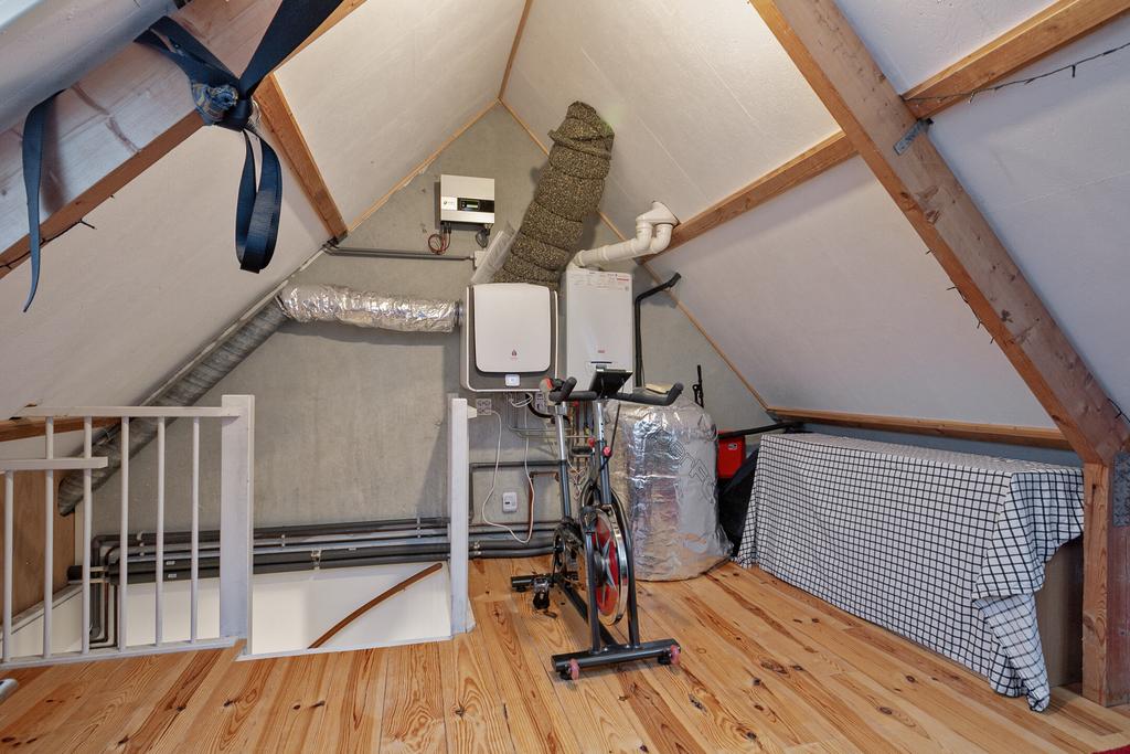 De zolder herbergt de cv-ketel en de omvormer van de zonnepanelen. Met ruimte en licht is dit een veelzijdige ruimte die naar eigen wens kan worden ingevuld.