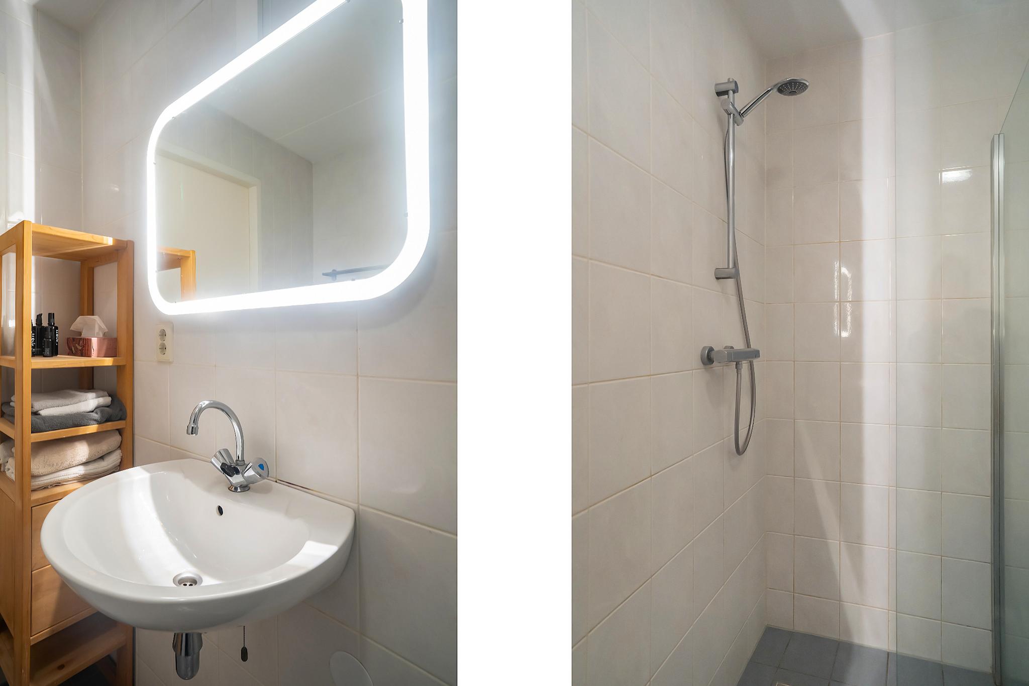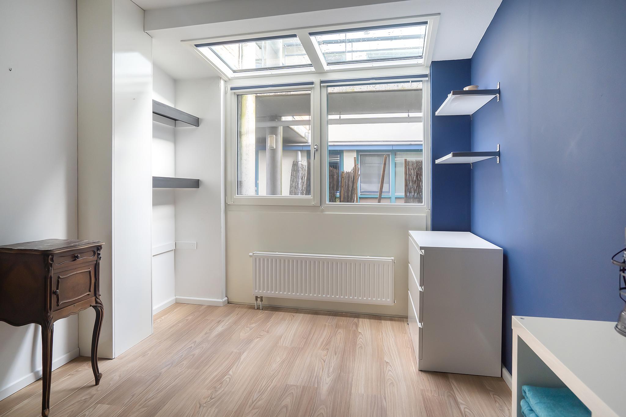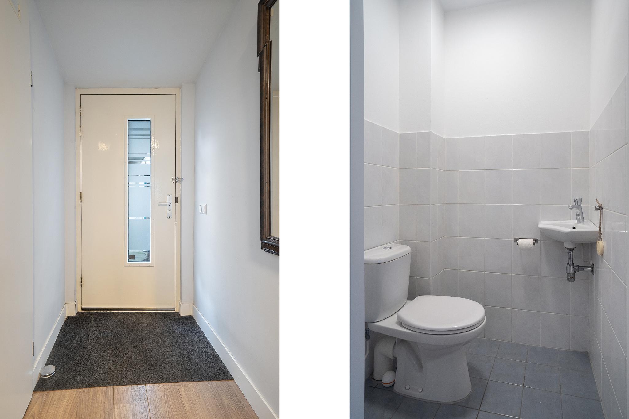 Aan de buitenzijde van het pand is een intercomsysteem en brievenbussen. Bij binnenkomst heeft u de keuze om met de lift of de trap naar de eerste verdieping te gaan. Door het hofje loop je linksachter naar de voordeur van het appartement. De lange hal van ruim 6 meter geeft dit appartement direct een royale uitstraling. Aan weerszijde zijn de slaapkamers van gelegen. De in het plafond geplaatste ramen maken deze vertrekken uniek en geven de ruimte een unieke lichtinval. De riante slaapkamer aan de rechterzijde van het appartement heeft met zijn 16m2 een oase van ruimte, waar kunt ontspannen op jouw kingsize bed. De slaapkamer biedt ook nog eens toegang naar een walk-in closet! Genoeg plek voor al jouw kledij. Aan het eind van de hal vind je aan de linkerzijde het aparte toilet en aan de rechterzijde de badkamer. Deze is voorzien van zowel een douche als een ligbad, waar je na een lange werkdag tot rust kunt komen. Aan het eind van de hal kom je uit in de woonkamer met open keuken.