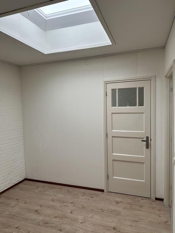 Through the stately entrance you have a storage room on the left, which is suitable for storing your bicycles or other objects, for example. Inside the living room you immediately notice the light and space. The living room is practical in terms of layout and can be comfortably furnished to taste. The open kitchen is equipped with a 4-burner stove, oven, dishwasher and sink with mixer tap and built-in refrigerator. Right in the living room there is access to the laundry room and a separate toilet. Then you will find a spacious bedroom with skylight, and an adjoining bathroom with a walk-in shower with rain shower and washbasin. Then you will find a second bedroom with a view of the inner garden. This bedroom is again good in size and offers sufficient conform.
