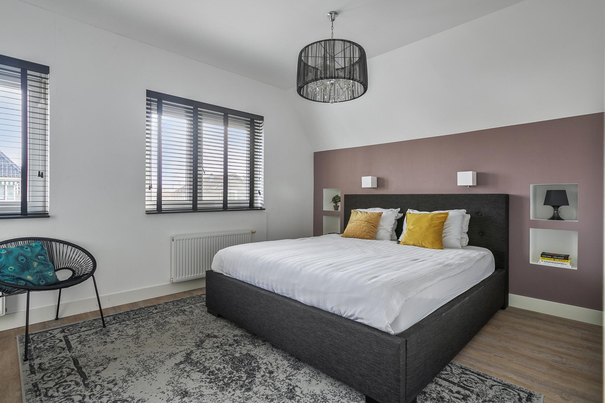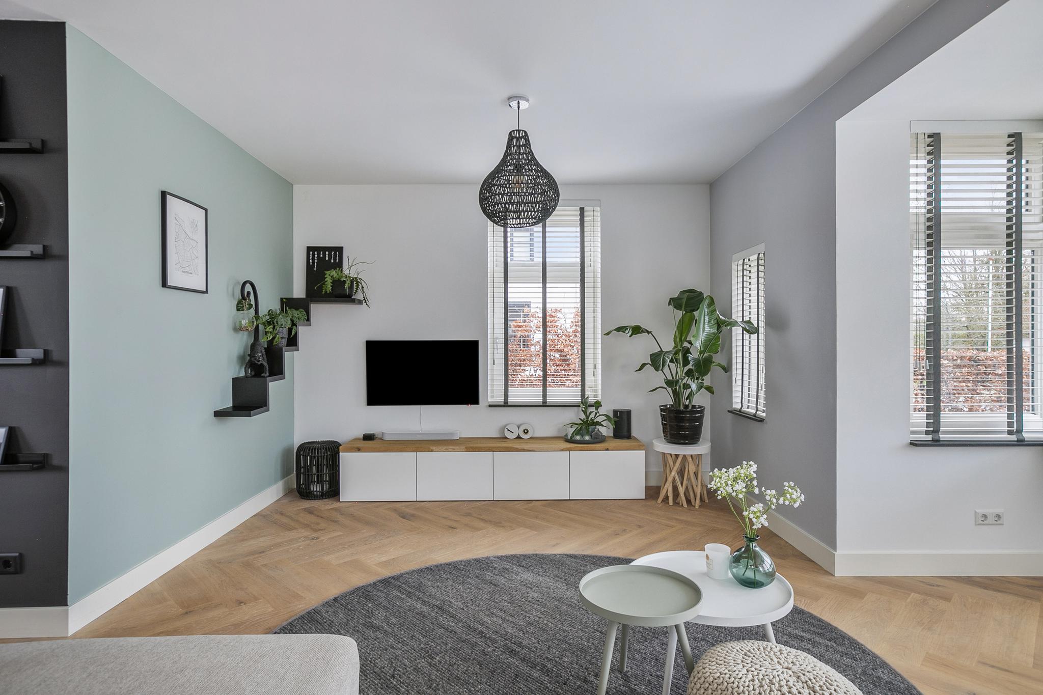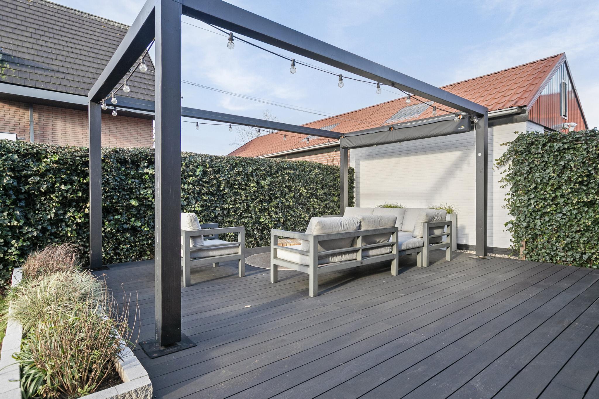 Park the car on your own driveway where there is the possibility of charging the electric car on your own yard. Upon entering through the spacious hall with cloakroom and toilet, you enter the living room which is flooded with light thanks to large windows. The very spacious living room has a spacious seating area and enough room for a large dining table. The modern open-plan kitchen is equipped with modern appliances and is connected to the rest of the living room. The kitchen offers direct access to the sunny back garden, which is located on the southwest.