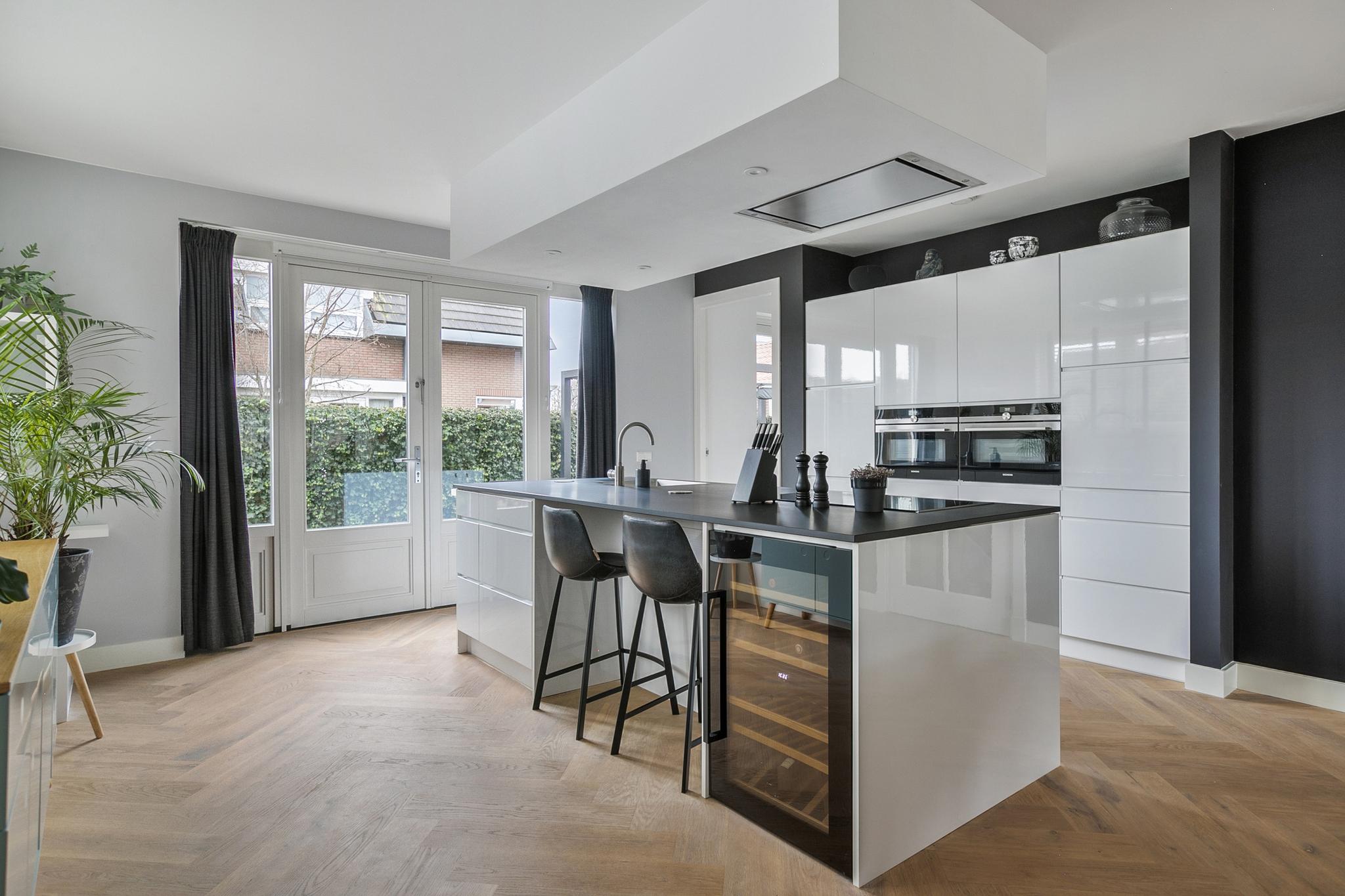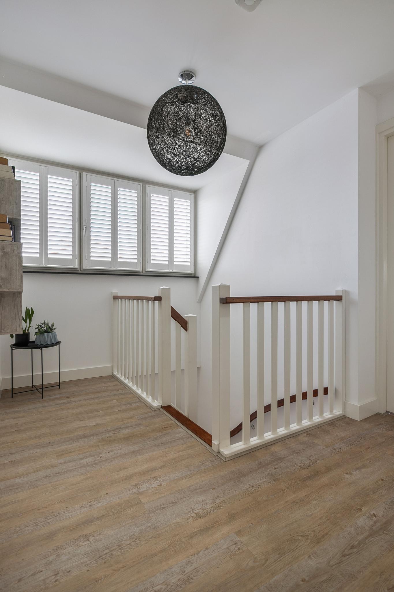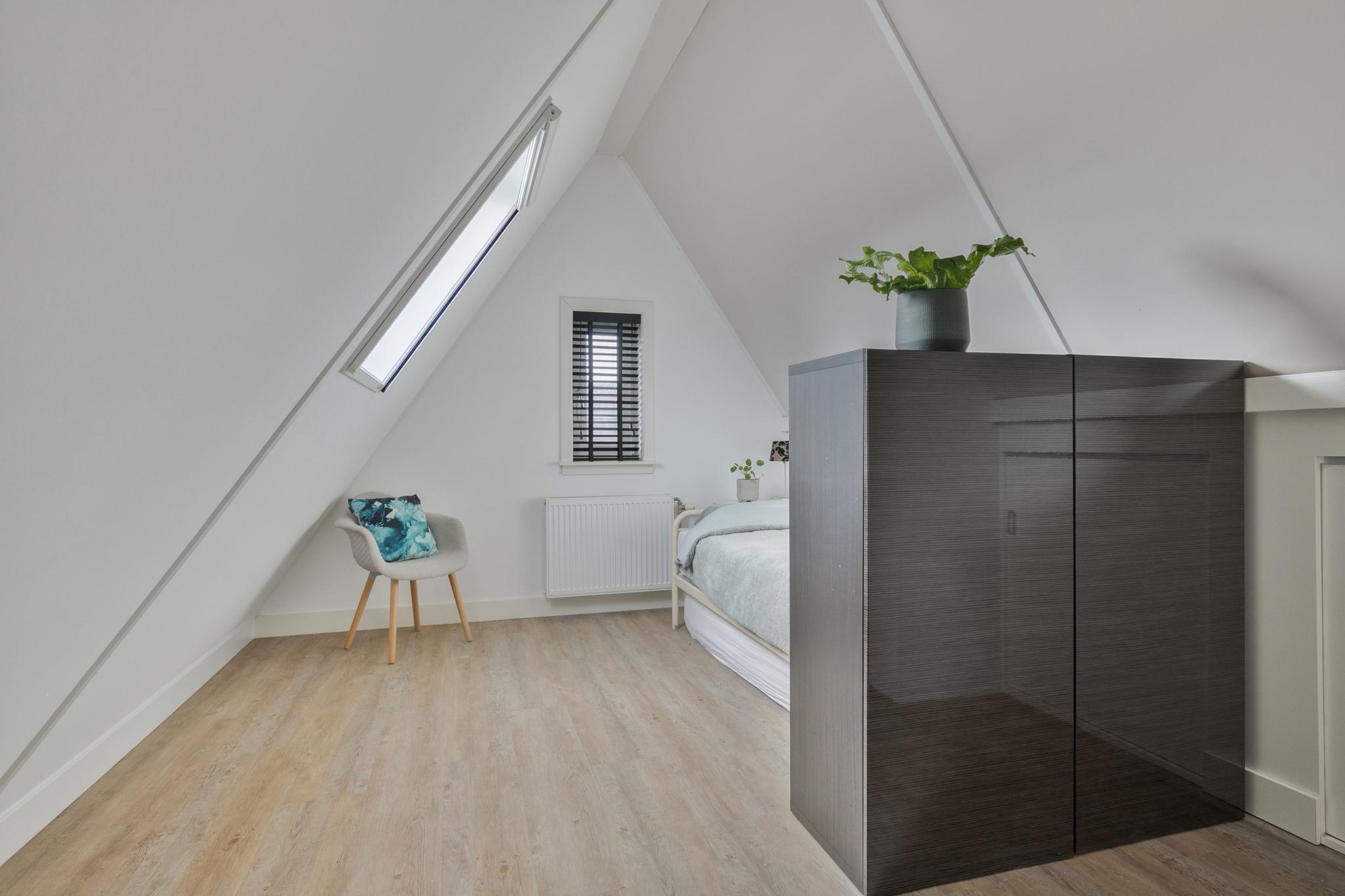 De keuken biedt directe toegang tot de zonnige achtertuin die gelegen is op het zuidwesten. De ruime achtertuin heeft veel privacy en biedt ruimte voor ontspanning en heerlijke etentjes in de zomer. Via de keuken zijn de bijkeuken en de garage te betreden welke tevens tot extra slaapkamer, thuiskantoor of praktijkruimte kan worden omgebouwd. De ruimte is verwarmd en biedt ook toegang tot de tuin. Op de eerste verdieping bevinden zich drie ruime slaapkamers en een eigentijdse badkamer met inloopdouche, een ligbad en een dubbele wastafel. De tweede verdieping herbergt een multifunctionele ruimte, ideaal als vierde of vijfde slaap- of logeerkamer, thuiskantoor en/of hobbyruimte.