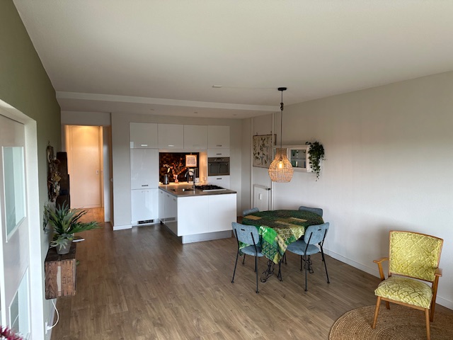 Spacious and bright living room with a beautiful view over Heemstede. The apartment has a modern open kitchen with a stylish cooking island, a 5-burner gas hob and high-quality built-in appliances, including a dishwasher, oven and refrigerator. There is also a spacious and bright bedroom with sufficient cupboard space. From the bedroom you walk to the luxurious bathroom with a walk-in shower and designer sanitary facilities. And of course there is a lovely balcony: Enjoy the breathtaking view over Heemstede.