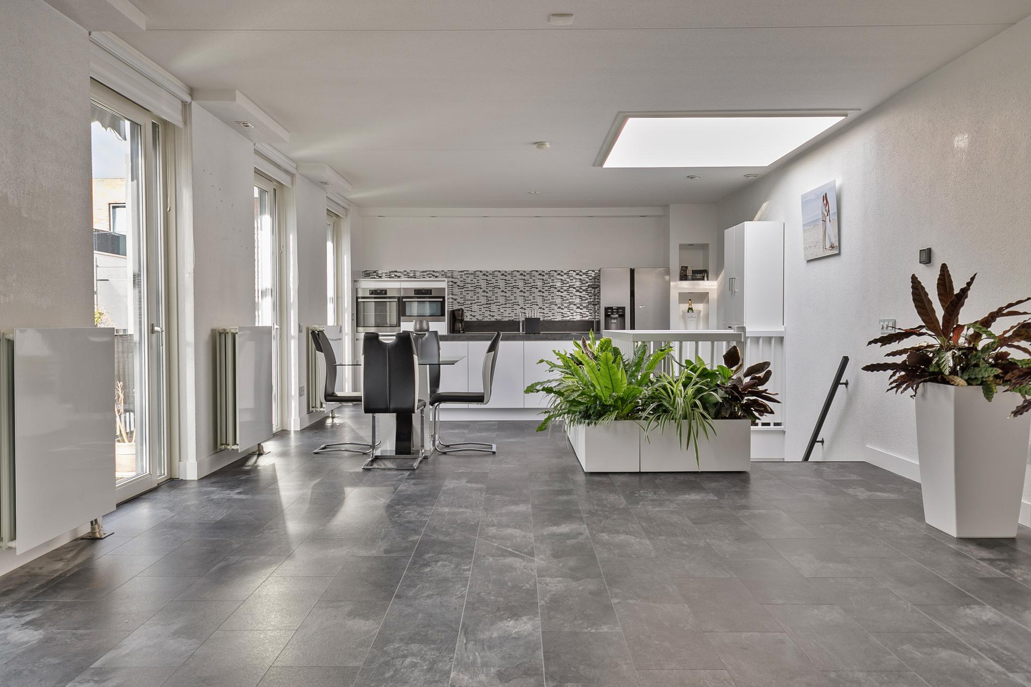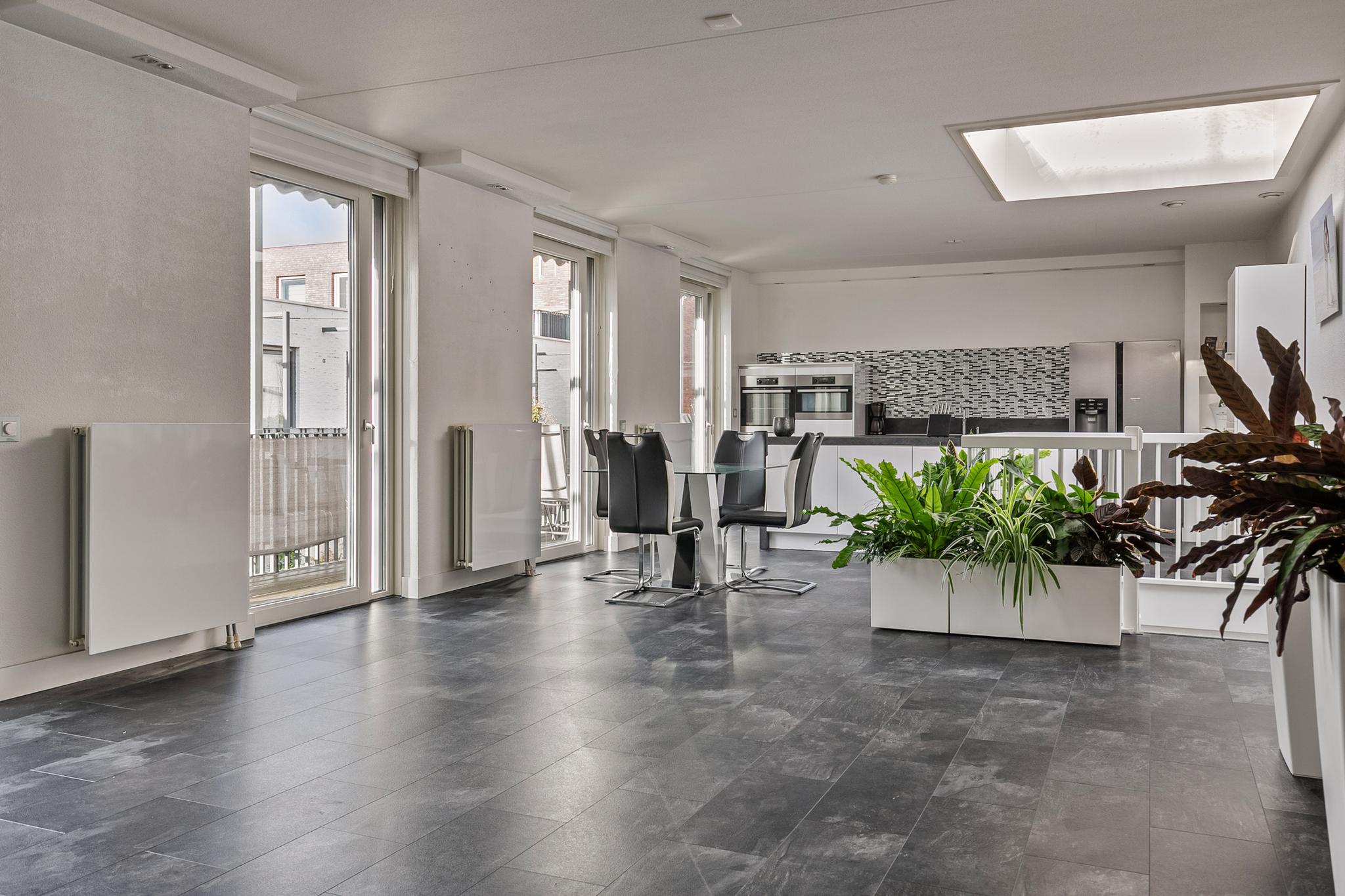 Een trap in de hal leidt u naar de eerste verdieping. Hier vindt u de ruime en lichte woonkamer met de aansluitende keuken. De open indeling geeft een gevoel van ruimte en licht, en biedt vele mogelijkheden voor inrichting en gebruik. Een zee van licht verwelkomt u zodra u de woonkamer betreedt. Grote raampartijen zorgen voor een overvloed aan natuurlijk daglicht, wat deze ruimte extra uitnodigend maakt. De woonkamer biedt plaats voor zowel een gezellige zithoek als een ruime eethoek. Een deur leidt naar het balkon, waardoor u binnen en buiten moeiteloos met elkaar kunt verbinden. De keuken is een ware droom voor kookliefhebbers. Een royaal aanrechtblad en een extra kookeiland zorgen voor voldoende werkruimte. Alle benodigde inbouwapparatuur is aanwezig, van een Quooker, een inductiekookplaat met afzuiging en ingebouwde oven tot een vaatwasser en een ruime koelkast. De moderne afwerking en slimme indeling maken deze keuken tot een aangename plek om te koken en gezellig te tafelen. Veel kastjes en lades bieden de nodige opbergruimte voor keukengerei en voorraad.