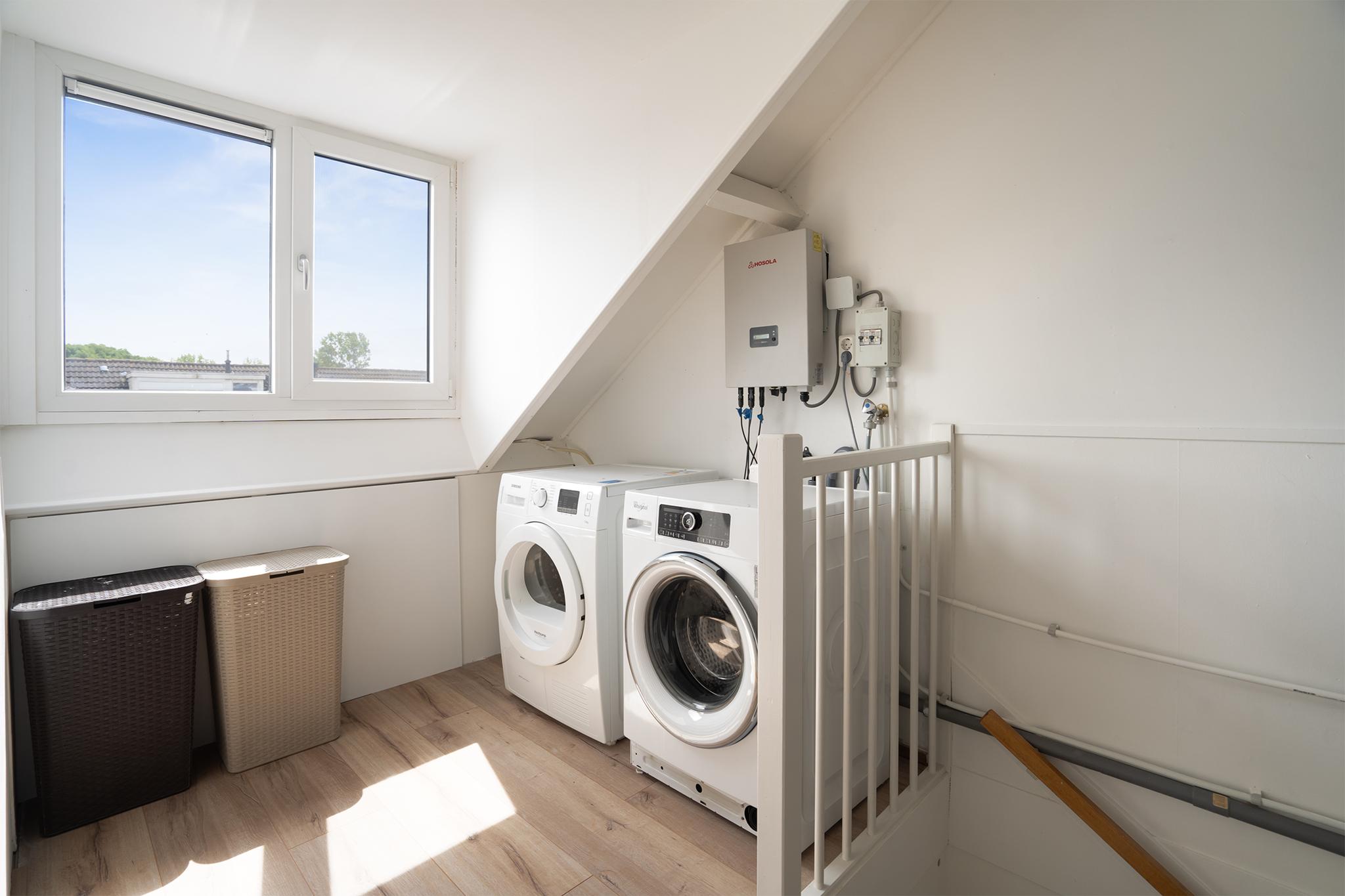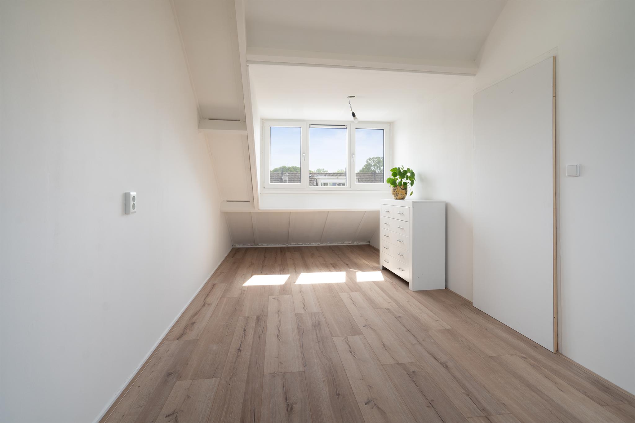 Via de tweede trap omhoog kom je uit op de voorzolder. Hier vind je de aansluiting voor de wasmachine, droger en hier hangt tevens de CV-ketel. De dakkapel geeft deze ruimte veel natuurlijk licht, wat de ruimte een open en frisse uitstraling geeft. Achter de voorzolder bevindt zich de 4e slaapkamer van de woning. Ook hier is een dakkapel geplaatst. Beide dakkapellen zijn in 2020 geïsoleerd. De kamer is net afgewerkt met laminaatvloer. Met een riante lengte van nagenoeg 5,5 m kun je met gemak een groot tweepersoonsbed kwijt. Zou jij je helemaal thuis voelen in deze energiezuinige gezinswoning? Maak dan snel een bezichtigingsafspraak!