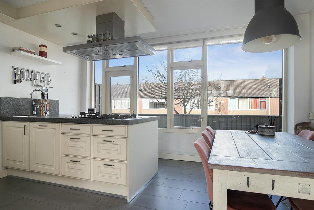 This spacious drive-in single-family home is located in the green and quiet neighborhood ‘Huiswaard’, near the pleasant center of Alkmaar. Primary schools, childcare and the supermarket are within walking distance. Due to its convenient location, the train station and the N242 and A9 highways are easily accessible. This will take you to the adjacent coastal towns, Amsterdam, Haarlem and Schiphol in no time. You can reach the historic center of Alkmaar within 7 minutes by bike. Here you will find an abundance of various restaurants, shops and entertainment venues! At the front of the house is a garage of almost 7 meters deep. Spacious enough for parking your car and storing belongings or creating your own workshop.The house has a large sunny garden with a rear entrance. There is also a spacious canopy at the back. Here you can enjoy yourself until the late hours after a day of shopping or sunbathing.