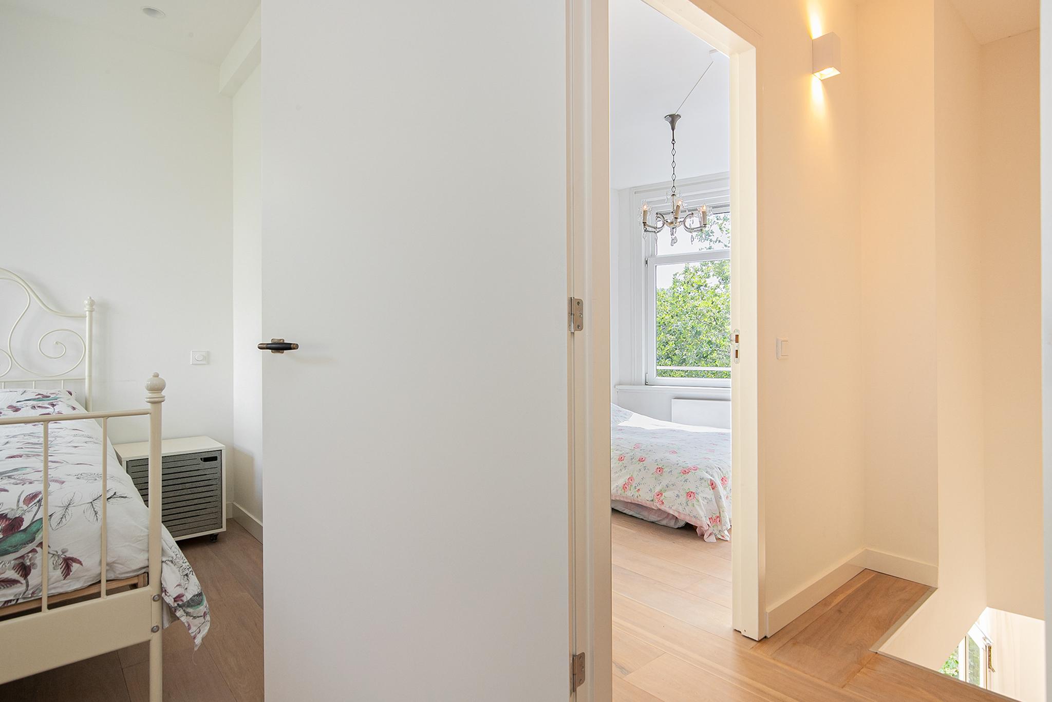 Entrance: Upon entering, the luxurious kitchen immediately catches the eye. This is equipped with a composite counter top, matte white doors, combination microwave, induction hob, sink with mixer tap, extractor hood and a fridge-freezer combination. In the sunny sitting area in the kitchen you can enjoy a drink and enjoy the incoming evening sun and passing boats on the beautiful Kostverlorenvaart. There is a separate room for the washing machine and dryer in the kitchen and also a separate toilet. The living room has a lot of light through the French doors on both sides, with an unobstructed view to the outside. At the front is a French balcony that is ideal for enjoying the sunset in the evening. There is also a balcony at the rear of the living room, which offers a peaceful view of the greenery of the inner gardens. The stairs lead you to a hall, which provides access to the luxurious Hothbath bathroom, which was completely renovated in 2023. This is equipped with wood look tiles, dark ceiling with spotlights, a second toilet, bathroom furniture, mixer tap, walk-in rain shower and underfloor heating with timer. The good-sized first bedroom at the rear has opening windows. Here you also have a view of the green inner garden and you can catch the first rays of the sun in the morning. This room was completely renovated in 2021. The light and the sleek finish immediately catch the eye. The second bedroom, including a spacious built-in wardrobe, which is located at the front, also has a wonderful unobstructed view of the Kostverlorenvaart. The room has plenty of light throughout the day and is well finished. The location on the fourth floor also offers the unique opportunity to build a spacious roof terrace or roof structure