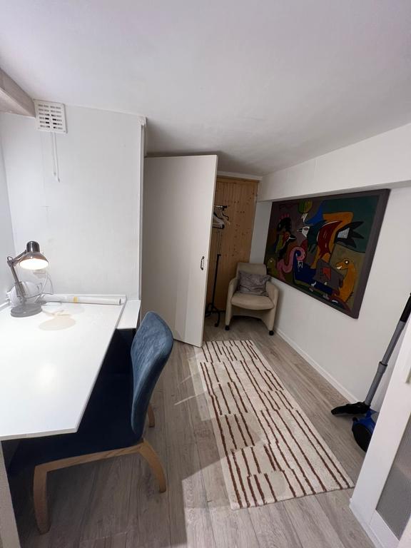 Betreed het appartement via de poort en schuifdeuren. Direct bij binnenkomst ervaart u de gezellige woonkamer en de volledig uitgeruste open keuken. Via de schuifdeuren komt u in de ruime slaapkamer. Beddengoed is inbegrepen in de huur. Aan de linkerkant van de slaapkamer vindt u een handig kantoortje. Bereikbaar via het kantoortje, biedt de walk-in closet voldoende ruimte voor uw kleding en accessoires. Toegankelijk via zowel de keuken als het kantoortje, is de badkamer voorzien van alle benodigde voorzieningen. Bereikbaar via zowel de badkamer als de walk-in closet.