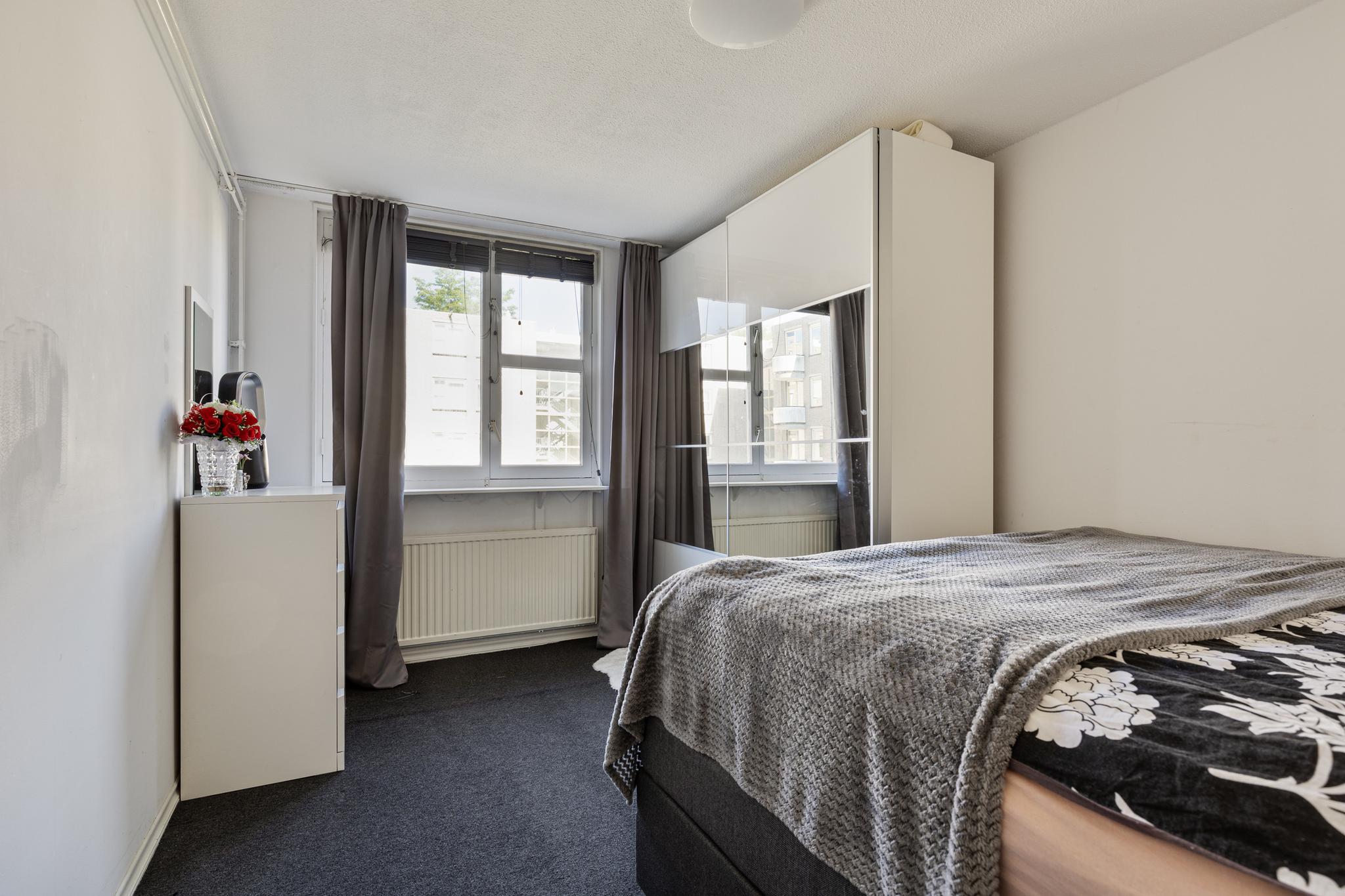 De woning beschikt over twee slaapkamers. De master bedroom is ruim en comfortabel, terwijl de tweede slaapkamer perfect is als kinderkamer, werkkamer of logeerkamer. De badkamer is recent vernieuwd en beschikt over moderne faciliteiten zoals een regendouche, brede wastafel met mengkraan en een spiegelkast met opbergruimte. Het aparte toilet is eveneens in dezelfde stijl vernieuwd.