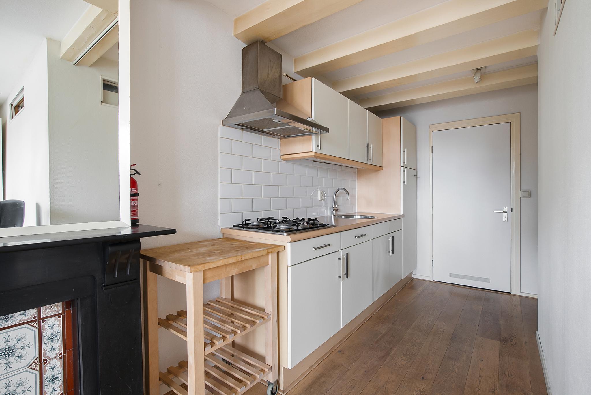 De open keuken is voorzien van een licht keukenmeubel en diverse inbouw apparatuur zoals een, koel- en vrieskast en gaskookplaat met afzuigkap. De slaapkamer heeft een lichte afwerking en is eveneens voorzien van een balkenplafond en een venster. Dit zorgt voor een aangenaam lichtinval en een rustige sfeer. De badkamer is voorzien van een lichte wandtegel gecombineerd met een donkere vloertegel en uitgerust met een douche, wastafel, hangend toilet en witgoedaansluiting.