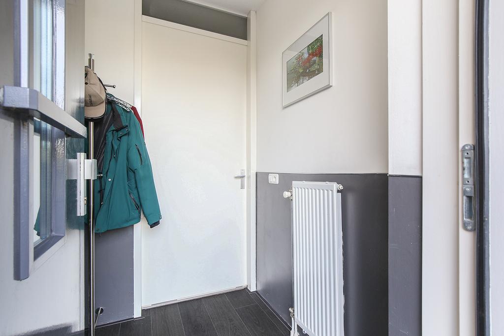 De entree is te bereiken via de voortuin, als u de woning binnenstapt komt u direct terecht in de entreehal, meterkast, via de deur komt u binnen in de ruime en lichte woonkamer met open keuken inclusief moderne inbouwapparatuur zoals; 4-pit inductiekookplaat, afzuigkap, inbouw combimagnetron, en inbouw koffiezetapparaat beide van het merk Bauknecht. Het ruime aanrechtblad en mengkraan maken de keuken af. Via een aparte hal komt u bij het separaat toilet met fonteintje, doormiddel van de trap bereikt u de eerste etage.