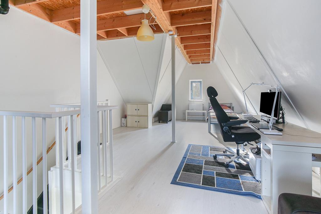 De laatste trap omhoog brengt u naar de zolder. De zolder is een oase van rust en veelzijdigheid, perfect voor verschillende doeleinden. Of je nu behoefte hebt aan een extra woonruimte om te ontspannen, te entertainen of om je hobby’s uit te oefenen, de zolder biedt alle ruimte en mogelijkheden. De open plattegrond en overvloedige natuurlijke lichtinval creëren een gastvrije en uitnodigende sfeer. De zolder is ook geschikt als een comfortabele logeerkamer voor familie en vrienden die op bezoek komen.